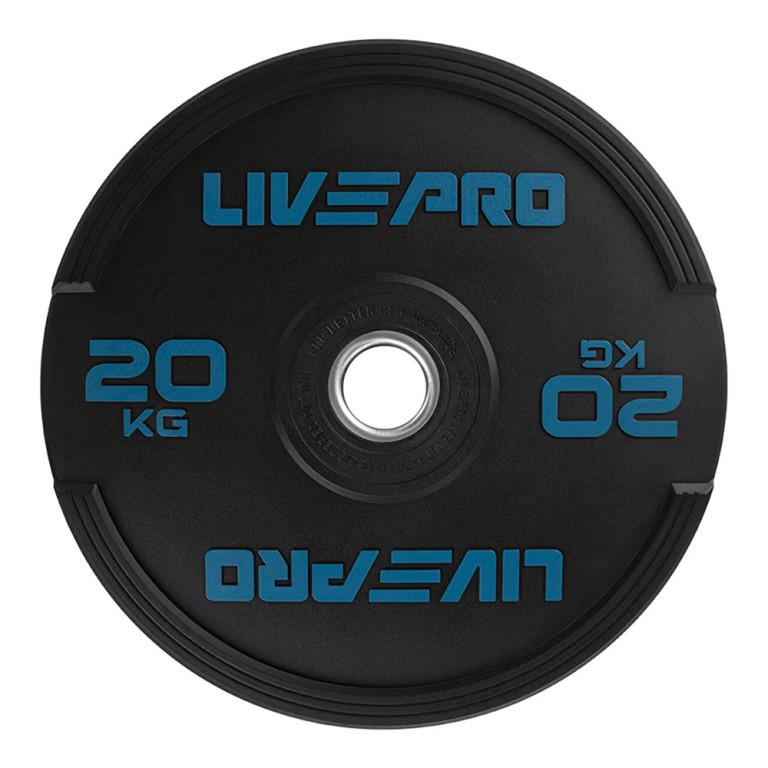 Οι έγχρωμοι δίσκοι προπόνησης από καουτσούκ της Livepro διαμορφώνονται σε υψηλές θερμοκρασίες με νέο τύπου λάστιχου πάχους 24-88mm. Είναι αθόρυβοι και δεν φθείρουν το πάτωμα. Αυτοί οι δίσκοι είναι εξαιρετικά αδιάβροχοι και ανθεκτικοί στη φθορά. Ο εσωτερικός δακτύλιος από ανοξείδωτο χάλυβα είναι εύκολος να τοποθετηθεί και να αφαιρεθεί από μια μπάρα. Πέρασε επιτυχώς χωρίς ζημιές μια αυστηρή δοκιμή πτώσης.
