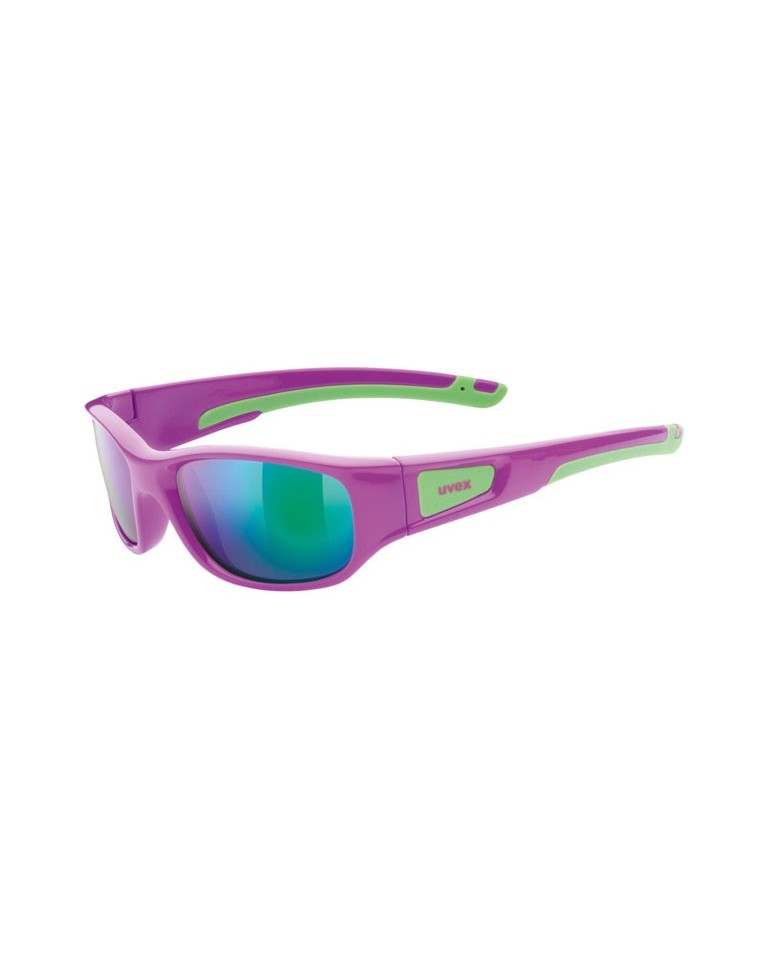Παιδικά γυαλιά ηλίου unisex σε μωβ χρώμα από την εταιρεία Uvex. Διαθέτουν φακούς με εξωτερική επίστρωση καθρέφτη, που αντανακλά μεγάλο μέρος της ακτινοβολίας, μειώνοντας την ποσότητα του φωτός που εισέρχεται στα μάτια, περιορίζοντας όμως και τη φωτεινότητα. Είναι κατάλληλοι για δραστηριότητες σε συνθήκες έντονης ηλιοφάνειας και σε επιφάνειες μεγάλης αντανάκλασης, όπως στα χιόνια και στη θάλασσα.