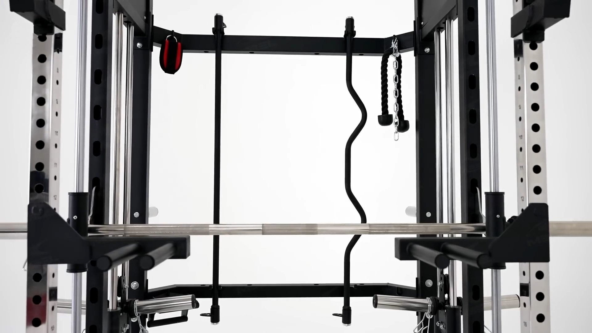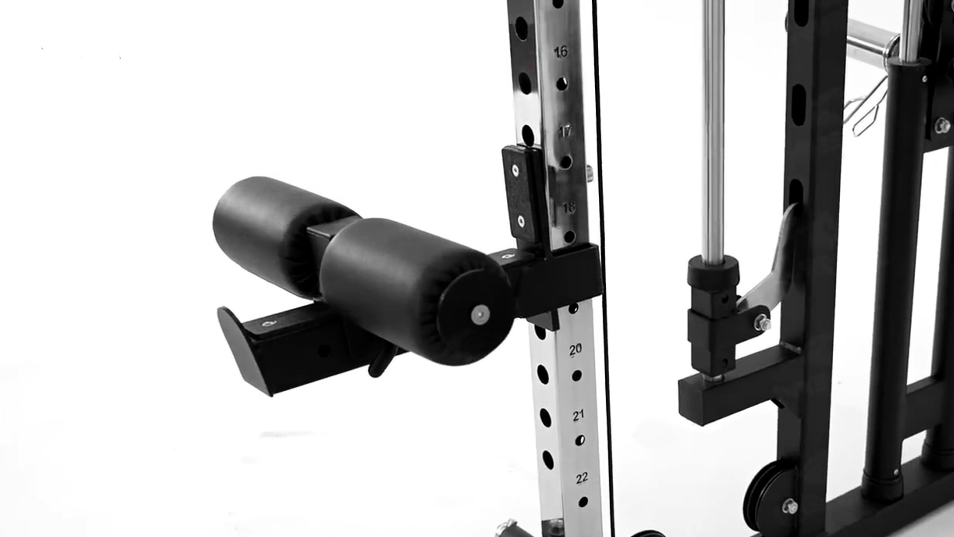 Διαθέτει στιβαρό σύστημα ολίσθησης μπάρας (Smith) για μεγαλύτερη ευελιξία και ασφάλεια στις άρσεις βαρών. Με εντυπωσιακή αντοχή βάρους έως 200kg. Περιλαμβάνονται 2 λαβές βυθίσεων με αντοχή χρήστη  έως 150kg.