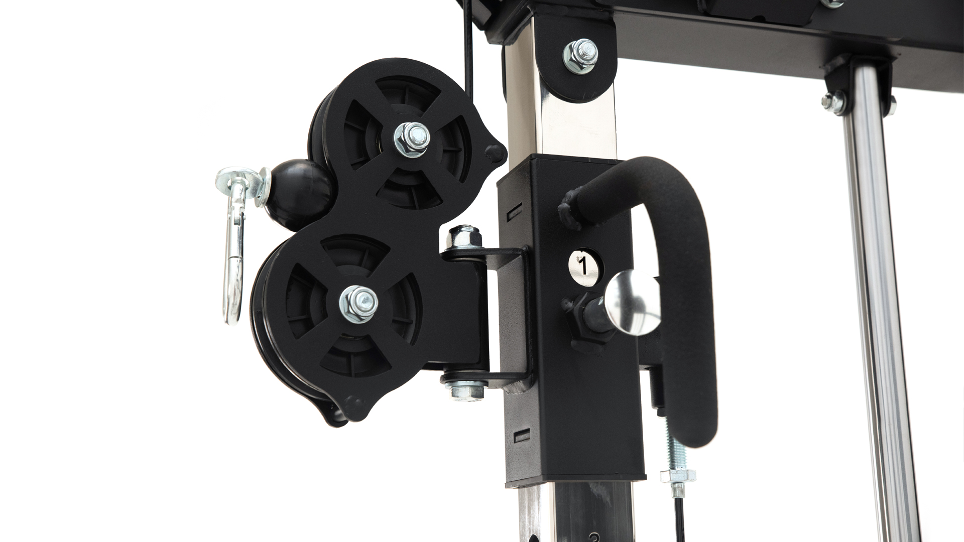 Σύστημα διπλών τροχαλιών Crossover με εύκολη ρύθμιση σε 22 διαφορετικές θέσεις. Κατασκευασμένο με συρματόσχοινα τροχαλιών αεροπορικού τύπου, ελεγμένα για αντοχή έως 800kg.